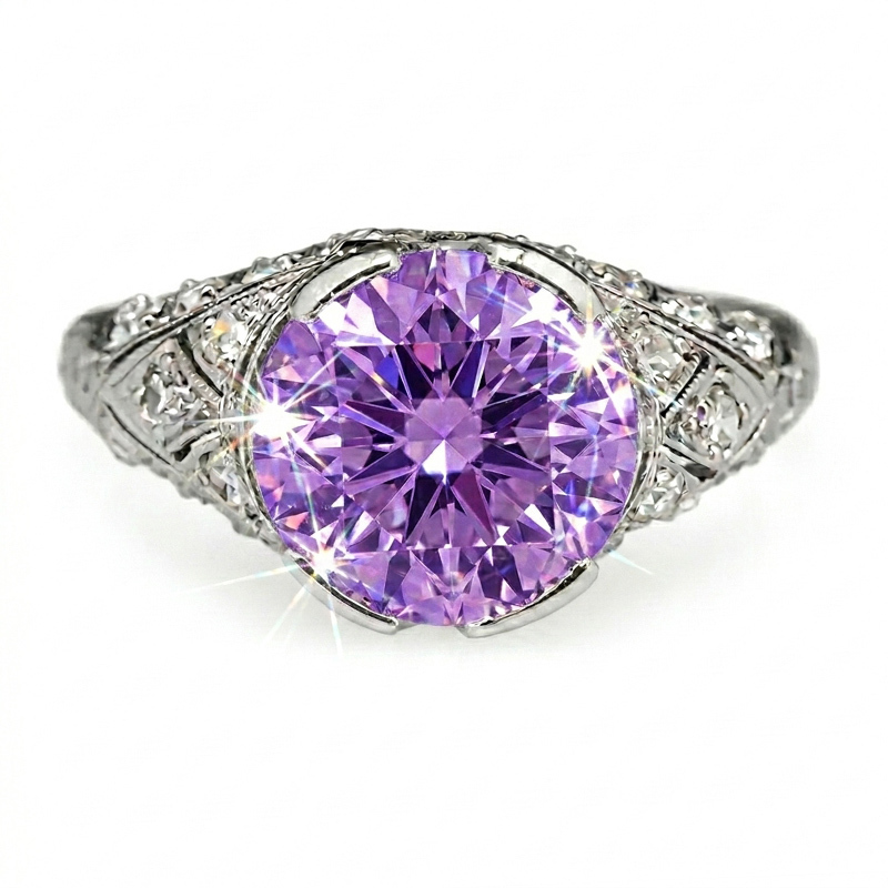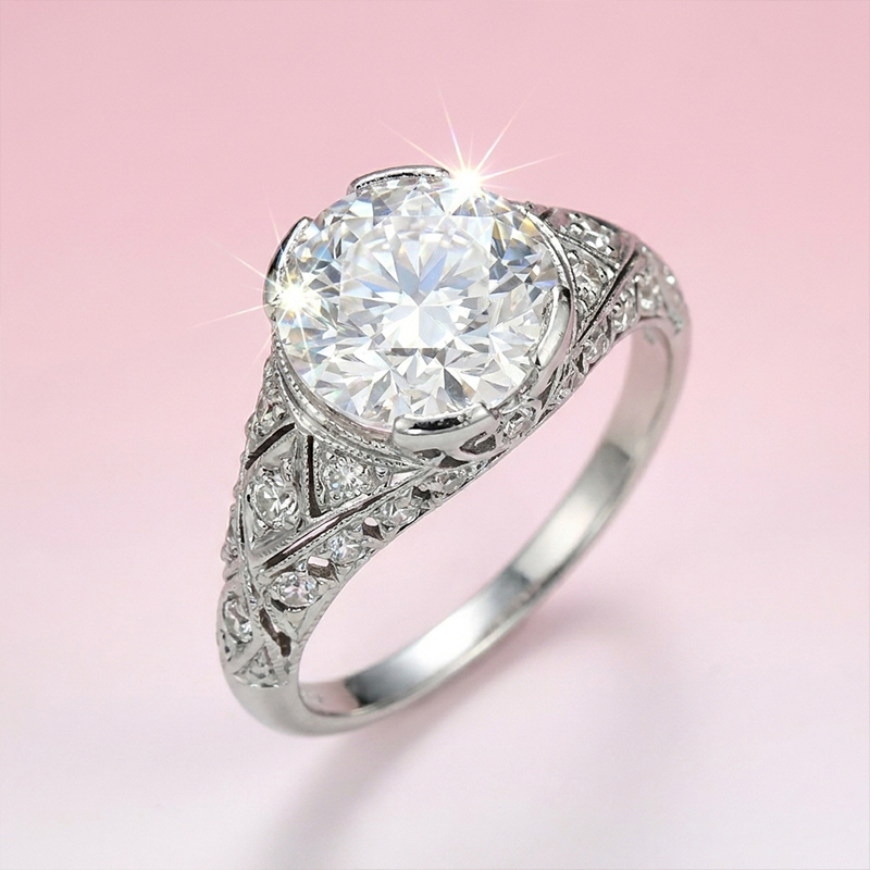 Sotiya Vintage Round Cut VVS Moissanite Engagement Ring Sterling Silver