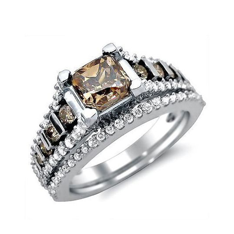 Sotiya Radiant Cut Coffee Bridal Wedding Set Sterling Silver