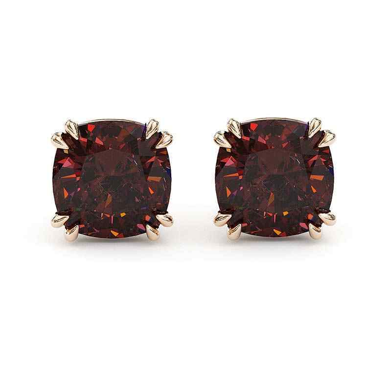Sotiya Solitaire Cushion Cut Coffee Stud Earrings Sterling Silver