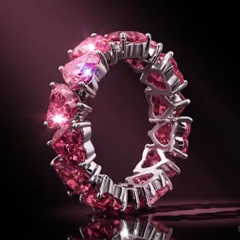 Sotiya Pink Heart Cut Eternity Ring Sterling Silver