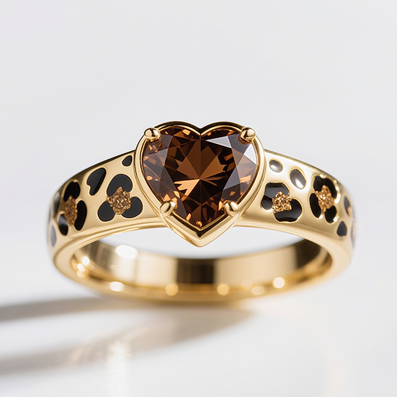 Sotiya Heart Cut Leopard Print Coffee Enamel Ring Sterling Silver