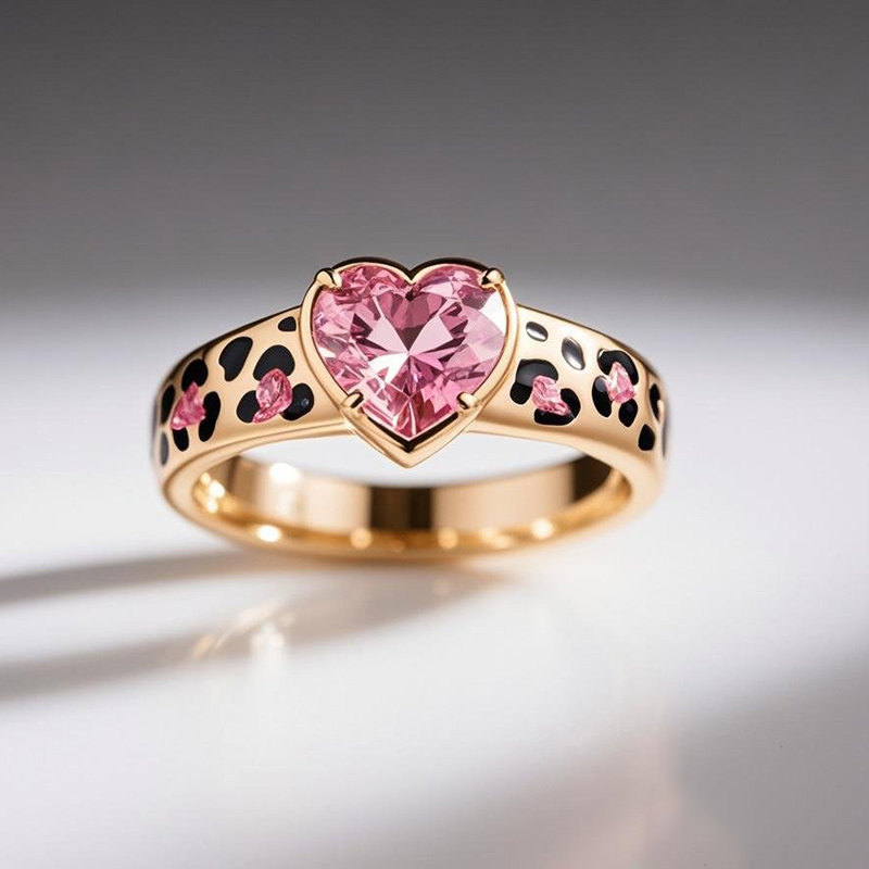 Sotiya Heart Cut Pink Leopard Print Coffee Enamel Ring Sterling Silver