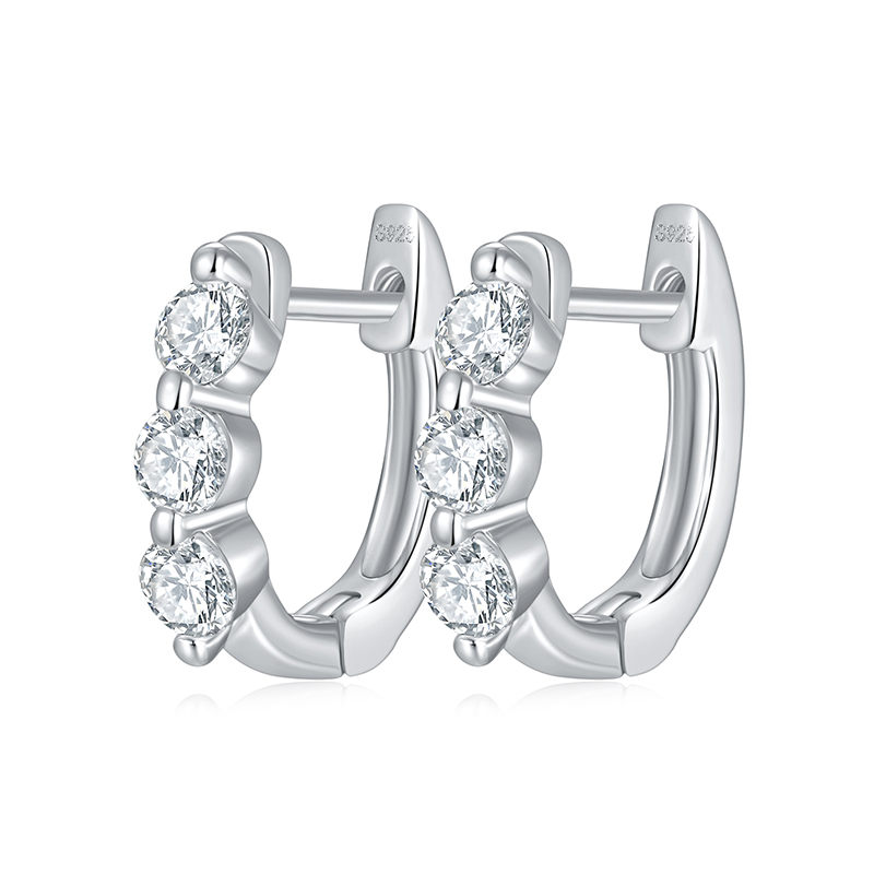 Sotiya Three Stone Round Cut Moissanite Hoop Earrings Sterling Silver