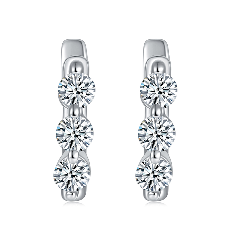 Sotiya Three Stone Round Cut Moissanite Hoop Earrings Sterling Silver
