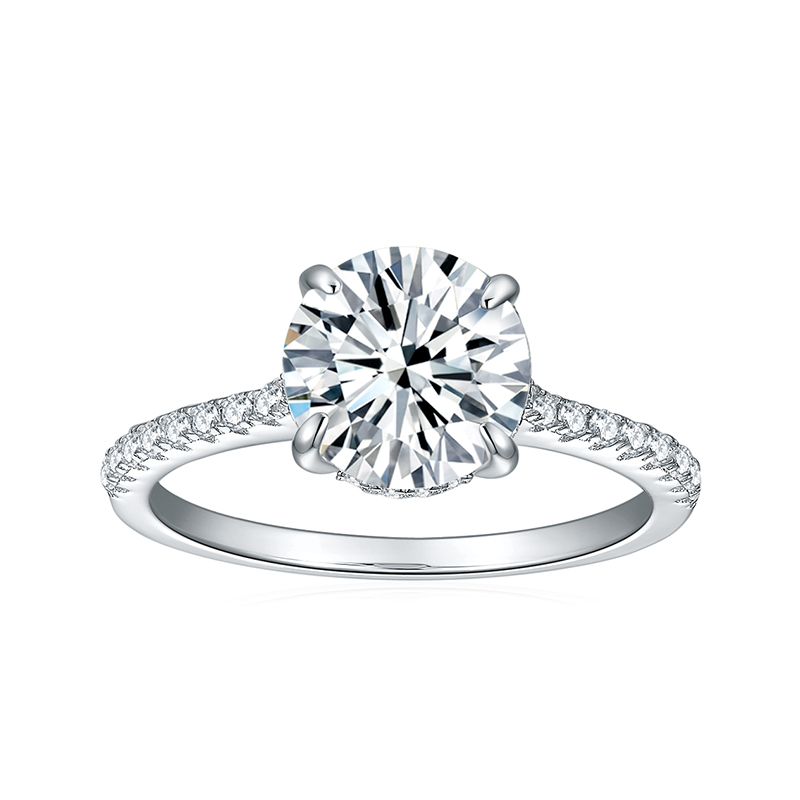 Sotiya Cathedral Hidden Halo Round Cut Moissanite Engagement Ring Sterling Silver