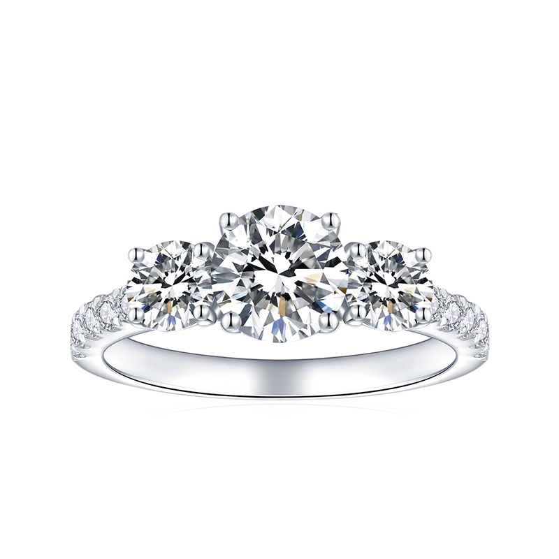 Sotiya Three Stone Round Cut Moissanite Engagement Ring Sterling Silver