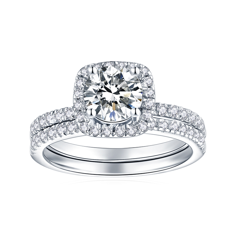 Sotiya Halo Round Cut Moissanite Wedding Bridal Ring Set Sterling Silver