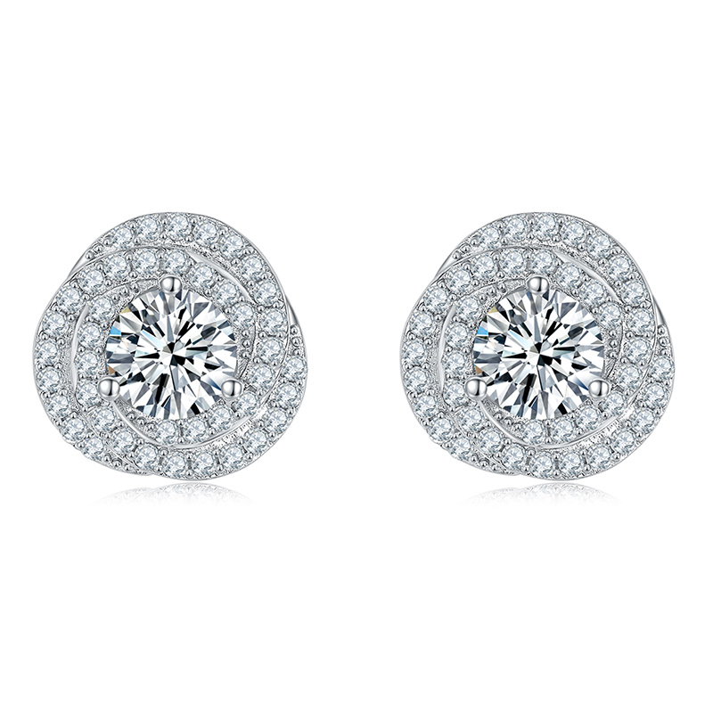 Sotiya Rose Flower Design Round Cut Moissanite Stud Earrings Sterling Silver