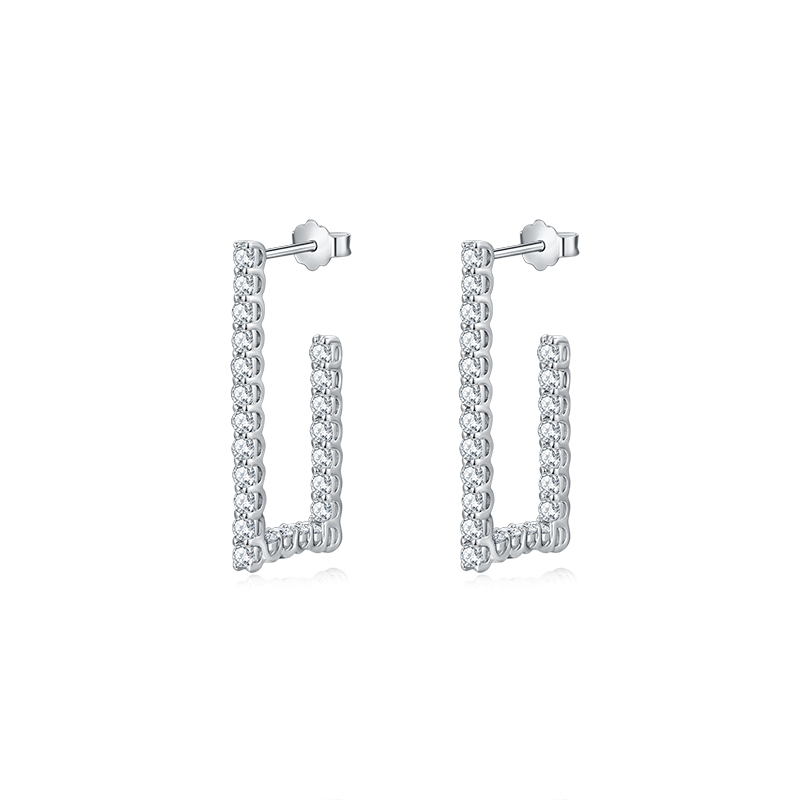Sotiya Geometry Round Cut Moissanite Hoop Earrings Sterling Silver