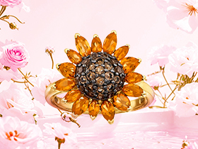 Sotiya Artist Collection Citrine and Coffee Sunflower Cocktail Ring Sterling Silver