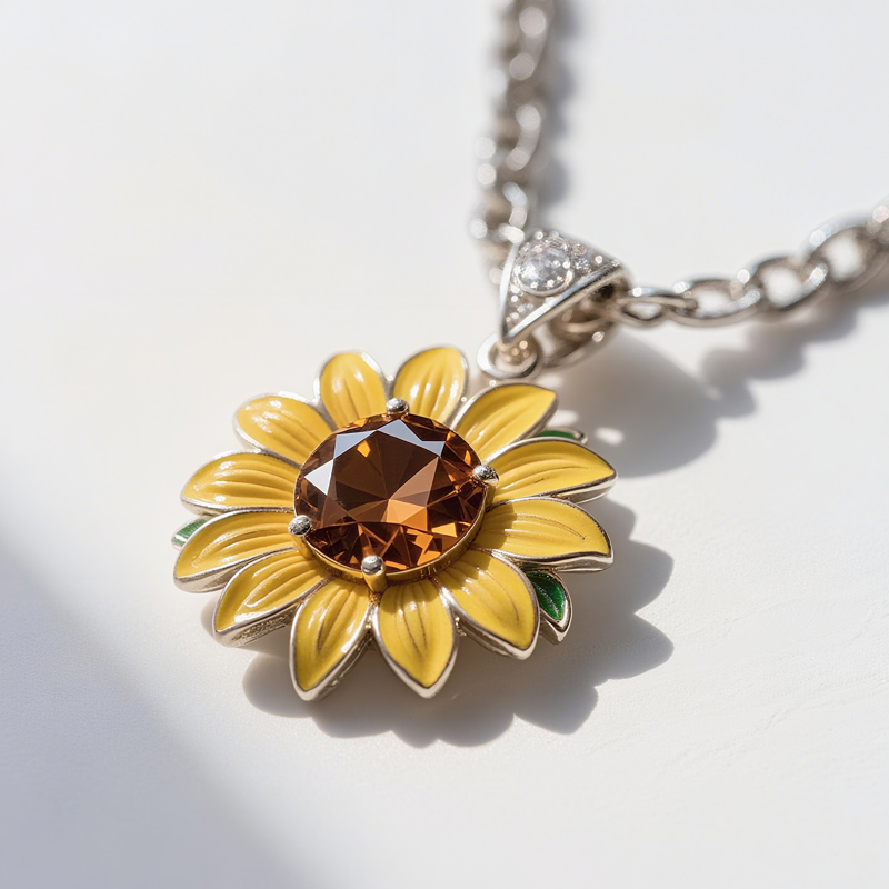 Sotiya Artist Collection Famous Painting Sunflower Enamel Round Cut Chocolate Necklace Sterling Silver