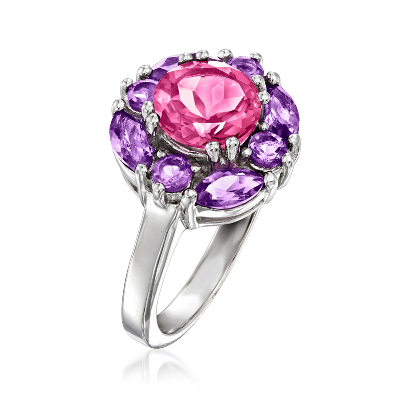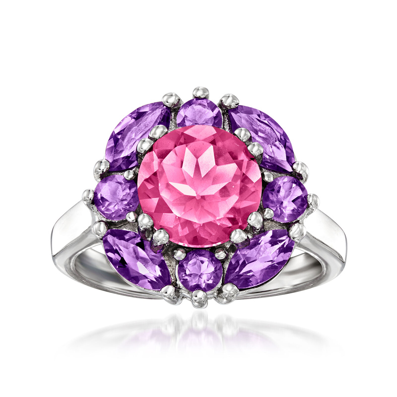 Sotiya Halo Amethyst and Hot Pink Round Cut Engagement Ring Sterling Silver