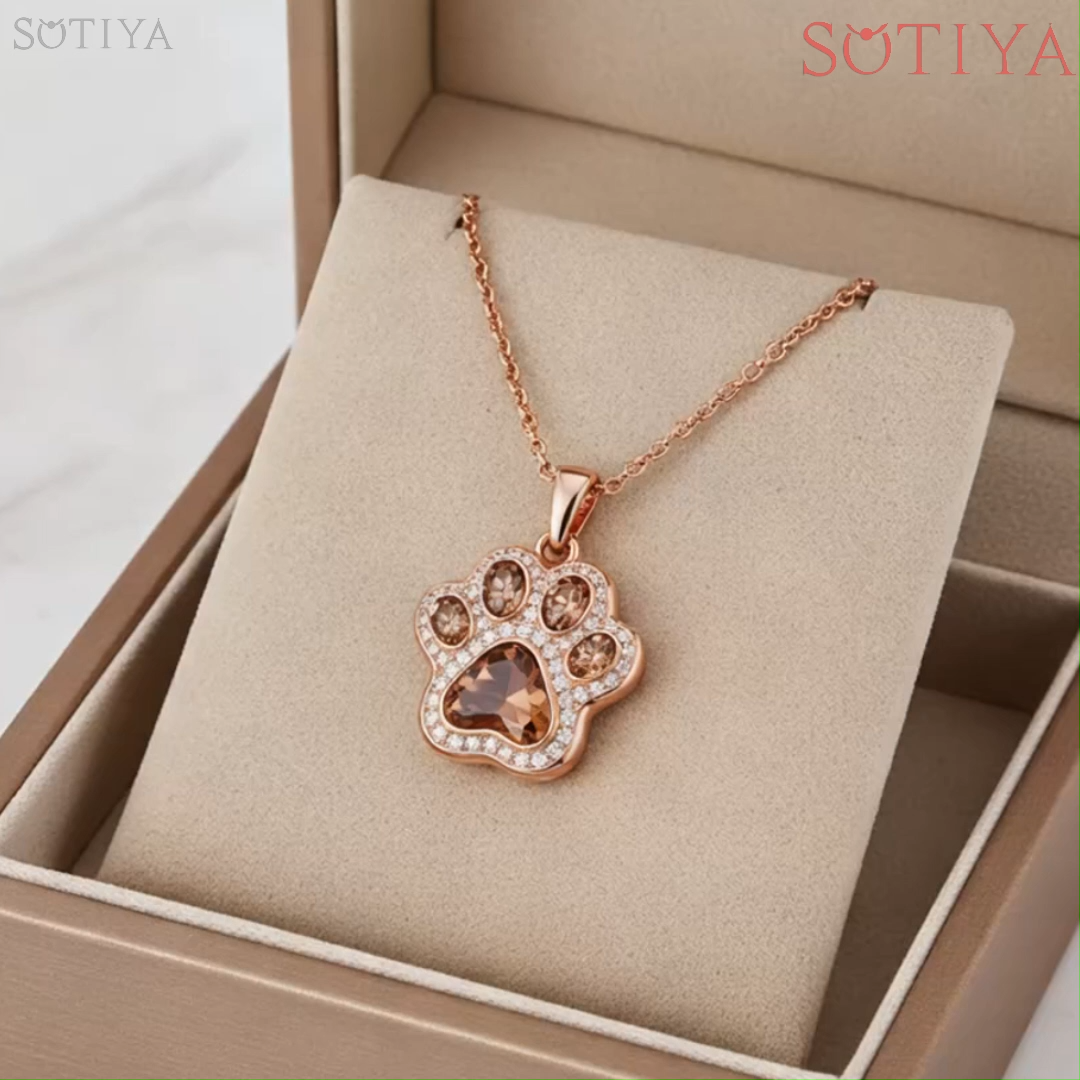 Sotiya Pet Cat Dog Paw Halo Coffee Heart Cut Pendant Necklace Sterling Silver