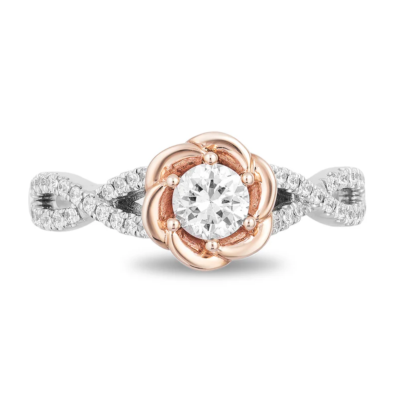 Sotiya Best Buds Rose Gold Rose Design Engagement Ring Sterling Silver