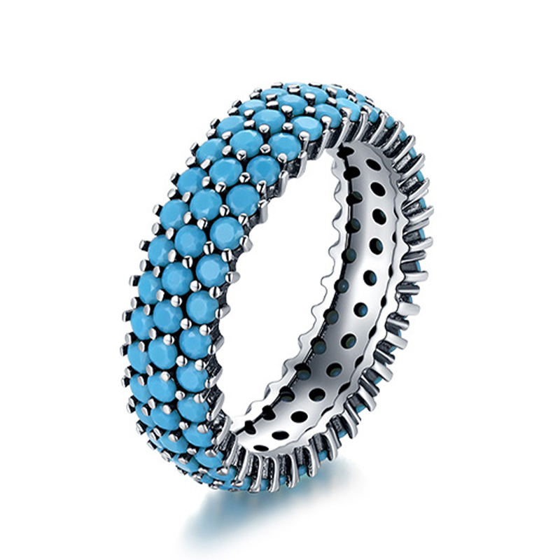 Sotiya Wide Round Cut Turquoise Eternity Ring Sterling Silver