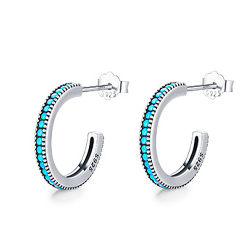 Sotiya Classic Design Turquoise Hoop Earrings Sterling Silver